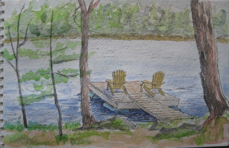 In 1983 and 1984, I had the opportunity to fly in a float plane to White Mud Falls on the Clearwater River, 100km north-east of Fort McMurray, Alta. Once in May when there was still ice along the shores, and then in June when we had to deal with mosquitoes. This is one of the 30 paintings I completed and sold in a show in Fort McMurray the following year. What an experience that was!!
